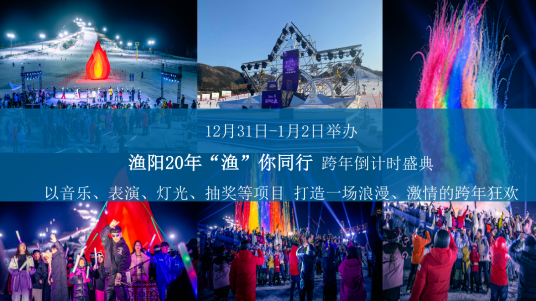 雪场还将于12月31日-1月2日举办渔阳20年“渔”你同行跨年倒计时盛典活动,以音乐、表演、灯光、抽奖等项目打造一场浪漫、激情的跨年狂欢。