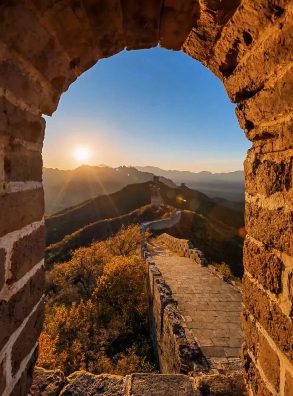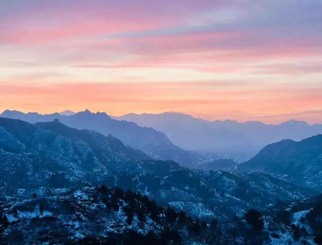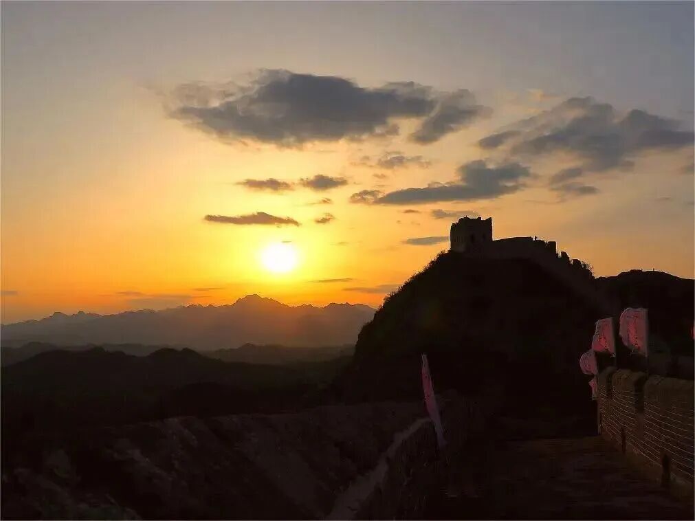 07:20|观日出;当第一缕微光刺破燕山的晨雾,金山岭长城便从沉睡中苏醒,用砖石的脉络,承接天地间最壮丽的开篇。凌晨的风带着山间的清冽,漫过垛口与敌楼,你无需追赶,只需站在城墙之上,看东方的天际从墨蓝渐染成橘粉,再被一轮红日撕开金色的帷幕。阳光爬上烽火台的棱角,将斑驳的城砖镀上暖光,千年的沧桑在这一刻褪去厚重,只剩光影流动间的震撼与温柔。