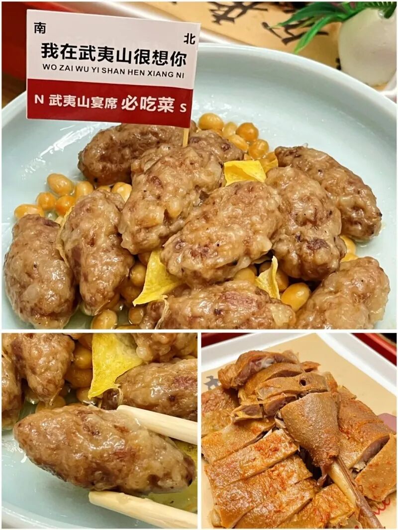 #武夷山美食1、岚谷熏鹅(独特的熏制工艺使得岚谷熏鹅香嫩可口)2、文公菜(将精肉、青粉、鸡蛋、白扁豆等食材巧妙蒸制而成)3、武夷东笋“东笋西鱼南茶北米”4、武夷溪鱼(肉质鲜嫩、味道清甜的溪鱼)5、朱子孝母饼与瘦肉羹6、薜荔冻(清凉可口的滋味)