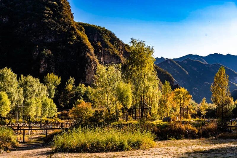 北京延庆百里山水画廊位于延庆区东北部千家店镇,属延庆生态涵养区核心区,总面积 371 平方公里,距延庆城区 40 公里,距市区 110 公里。东与怀柔区毗邻,北与河北省赤城县接壤,西南、东南分别与香营、刘斌堡、珍珠泉三个乡相连,滦赤、花千、