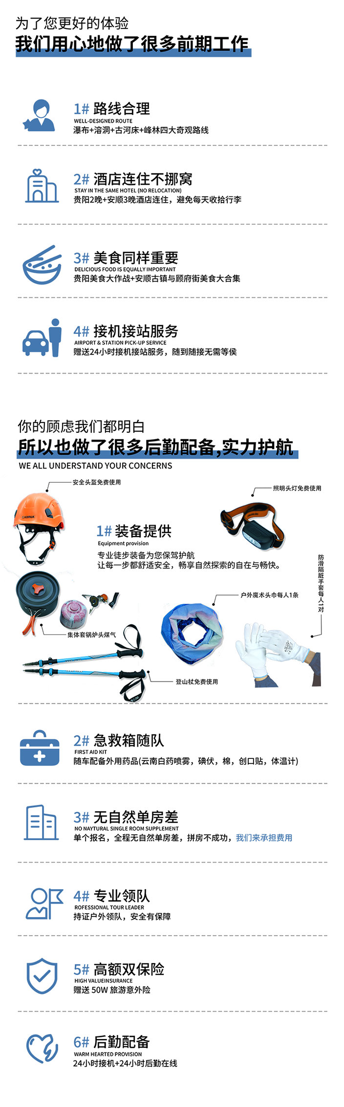 ➀ 保险:赠送50万保额旅游意外伤害保险(未满10周岁儿童最高为20万保额)