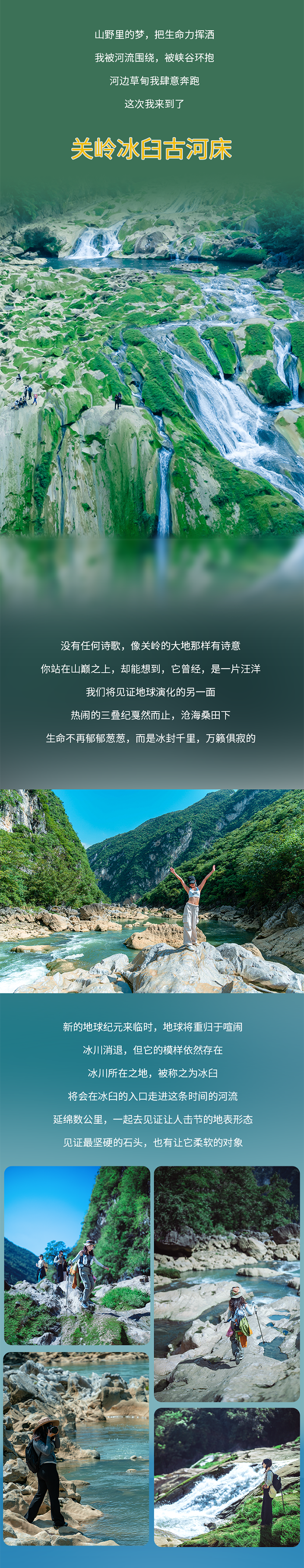 早餐后前往冰川时代遗留下的冰川地貌奇迹-关岭冰臼;沿古河道探寻第四纪冰川留下的神秘印记——数百个形态各异的冰臼群。有的如巨碗嵌于河床,有的如漩涡深入岩心,每个冰臼都是地球气候变迁的活化石,傍晚返回酒店后自由活动。