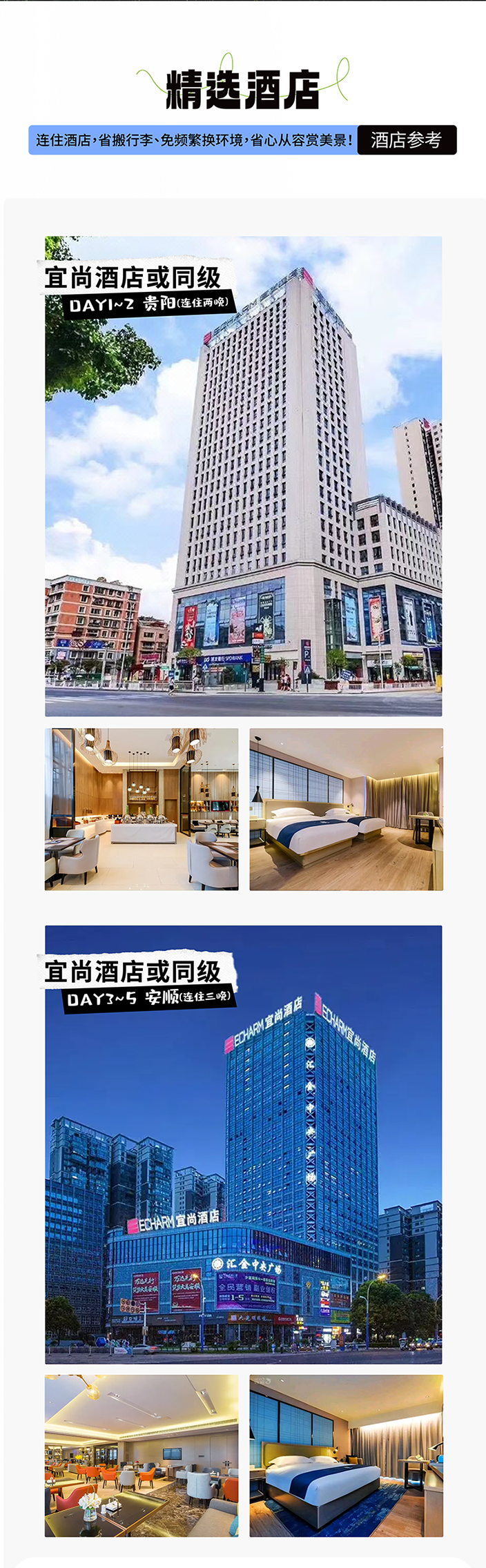 ➁ 住宿:贵阳2晚连住+安顺3晚酒店连住(2人/间)