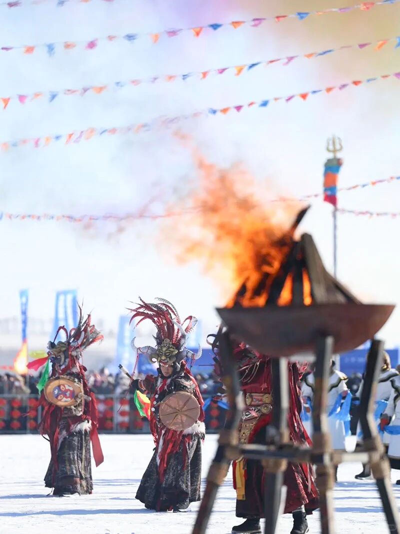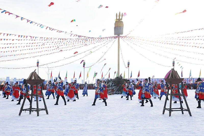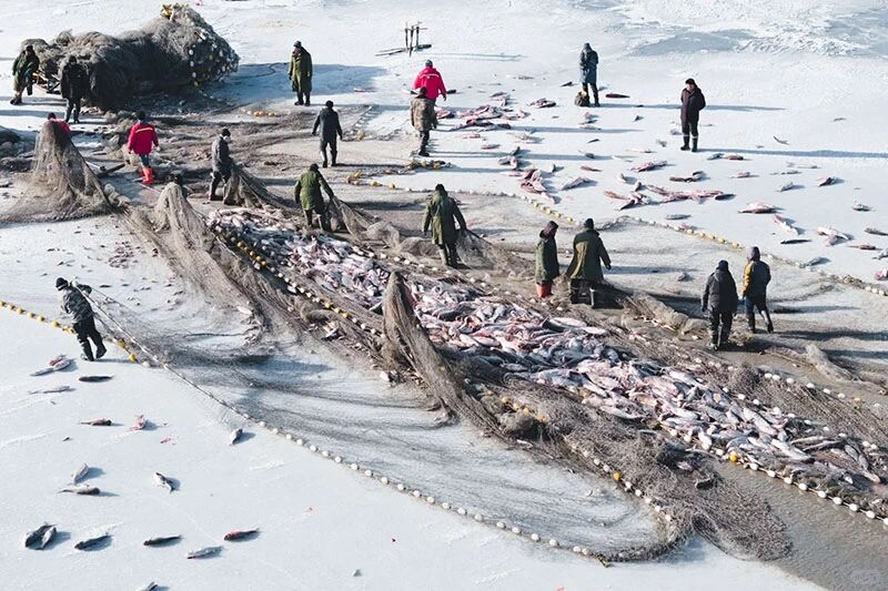 查干湖冬捕是吉林省前郭尔罗斯蒙古族自治县传统冬季渔业生产方式,起源于辽金时期,以祭湖、醒网、凿冰、撒网等流程形成独特渔猎文化。该习俗于2008年被列入国家级非物质文化遗产名录!装满鱼的网肚无法拉出冰面,只能从狭小的出网口逐条捞出。当渔网被一点点出,“冰湖腾鱼”的盛景再次呈现。