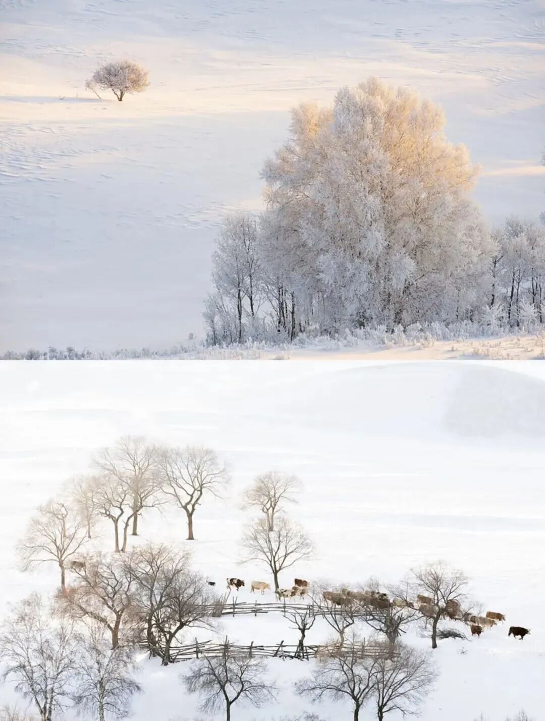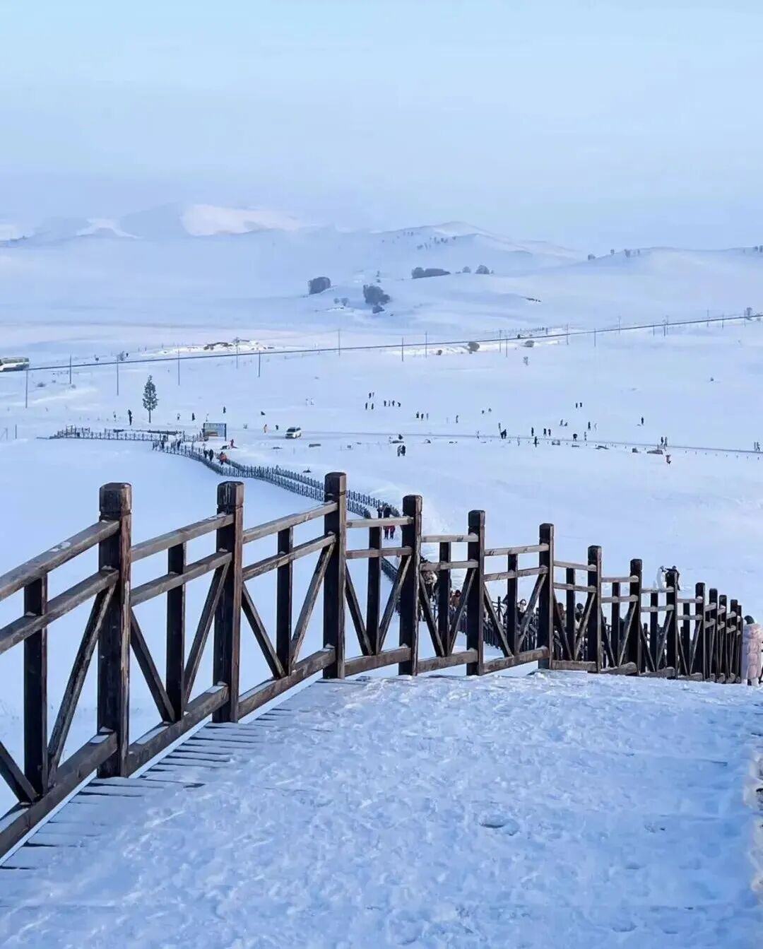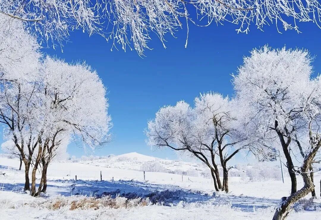 - 上午|早餐后前往乌兰布统的小河口欣赏树挂(也叫雾凇)在低温的大地结晶,这就是美丽的冰花,大量的冰花落在树上,牧场的护栏上,电线上,美景从此出现。这就是大家期待的雾凇(雾凇视受天气影响较大,不一定能看到,如当天没有我们换其它地方玩耍)。