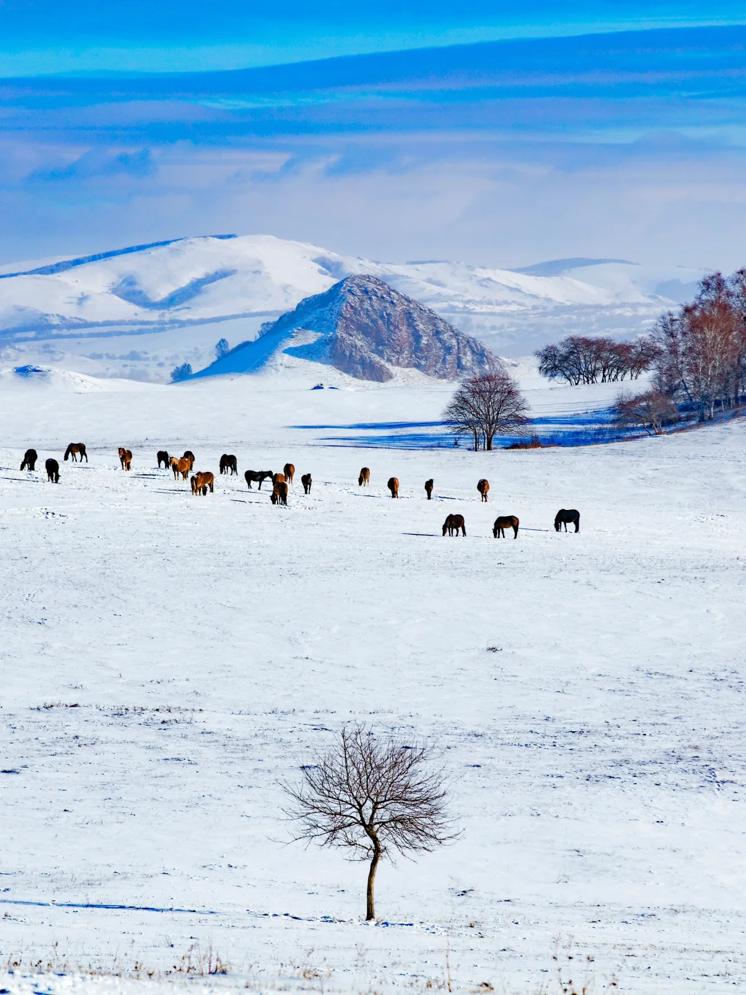 乌兰布统景区位于内蒙古赤峰市克什克腾旗属于丘陵式草原,平原、丘陵、沙地、湖泊等地形多种多样,是一片多元素的草原,这里是十大最美摄影基地之一,也是著名的影视作品的“草原录影棚”盛产很多优秀作品。如果你见过了乌兰布统草原的夏天和秋天,那么一定要来一次乌兰布统的冬,感受一下真正的童话世界!