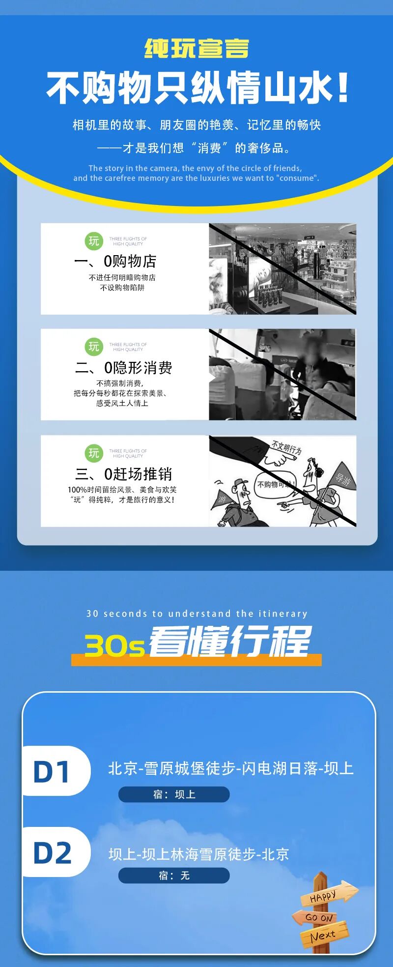 1)本活动属于户外旅行活动,纯玩,全程不进购物店,没有任何形式购物环节,领队也不作购物推荐,敬请谅解;同时本活动所有费用已明示(包括有可能您自愿自费的项目),无其它任何收费,请您仔细阅读费用包含和费用不含内容。