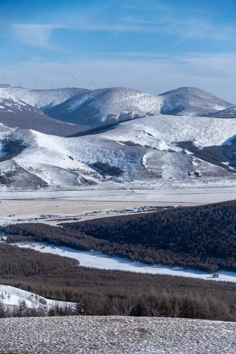 - 早餐后集合出发坝上林海雪原徒步起点,全程约8-10公里,爬升约350米。(注:山上可能雪厚,建议配齐雪套和冰爪。)