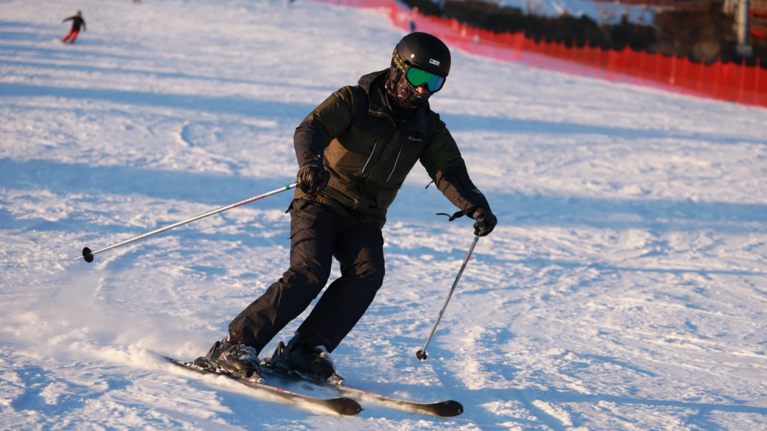 ▊ 滑雪小教程1.在平坡上站立:抬头挺胸,目光平视前方,身体重心向前,微微下蹲。2.在斜坡上站立:让滑雪板与雪坡保持垂直方向,然后用雪板的板刃卡住雪面。3.滑雪的基本姿势:上身放松,身体重心向前,向下压膝盖,弯曲小腿向前顶住滑雪靴,目视前方,滑雪杖向后外侧。4.刹车:滑雪板呈八字形,膝盖内扣,身体重心放在两脚之间靠前的位置,用滑雪板的内刃卡住雪面。5.滑降:双脚呈八字形,两膝稍弯,身体重心在两板之间,两个雪板的板刃卡住雪面。6.转弯:依靠身体重心向一侧板移动,或者加大一侧雪板的蹬雪力量来改变滑行方向,向左转时,把重心放在身体左侧。