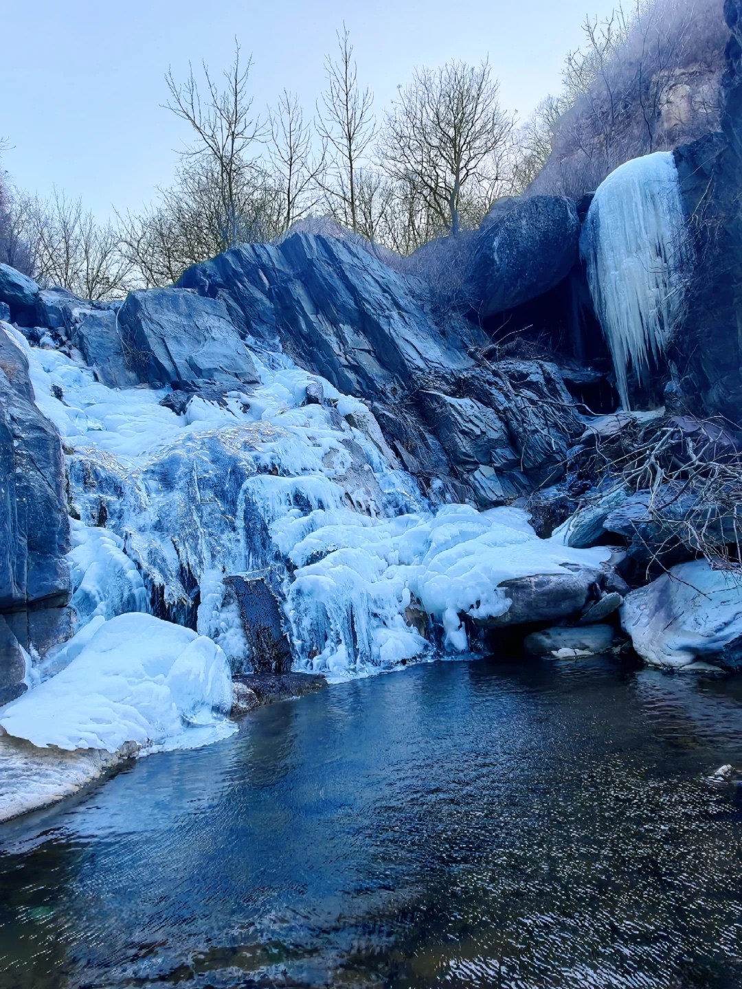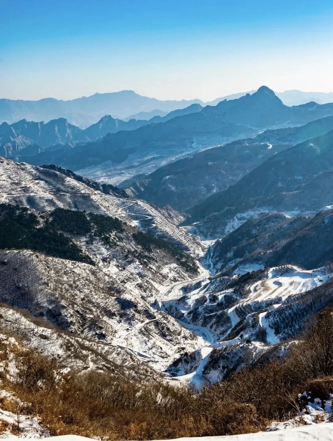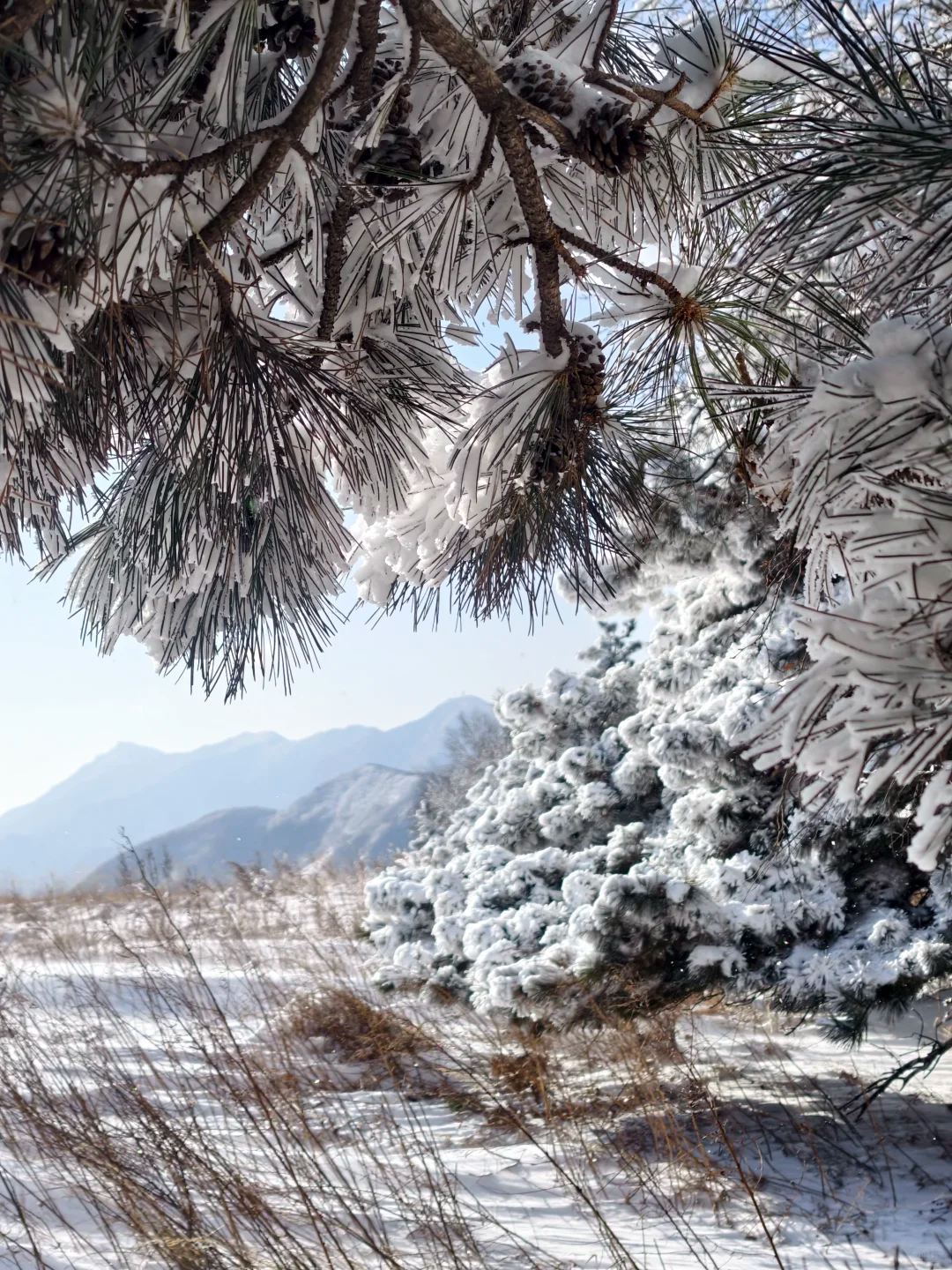 群山环绕,亚高山草甸,原始森林溪水冰瀑山脊线上视野辽阔东灵、北灵、西南灵、百花山等著名山系尽收眼底是冬季绝佳的踏雪路线