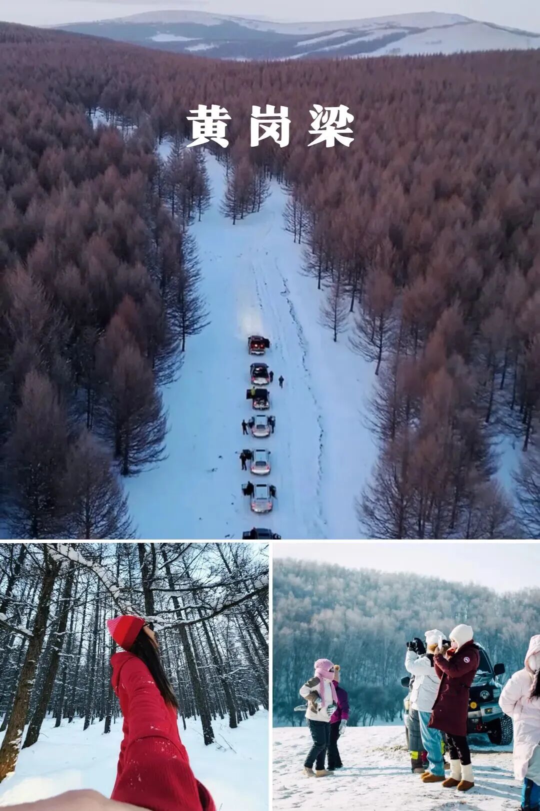 上午|热阿线奇幻穿越,热阿线0起点打卡,车窗摄影拍摄公路两侧雾凇走廊与雪中牧群,爆笑打卡很黑村,领取限量版“很黑但很温暖”恶搞路牌合影道具。黄岗梁巅峰挑战,冲顶海拔2029米最高峰(常规车辆禁行路段)轻徒步教学:穿越深雪区,抵达360°全景观景台,秘密任务寻找雪地动物足迹,解密猞猁/马鹿冬季行踪。
