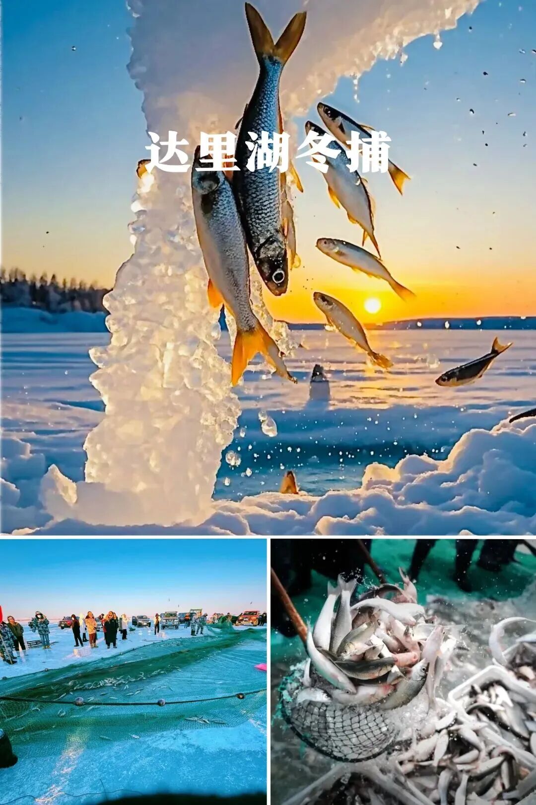 达里湖的冬日,是一场冰雪的盛宴。湖面被冰雪封印,宛如一块巨大的璞玉,散发着温润的光泽。冬日的湖面,似一面巨大的银镜,一群洁白的天鹅优雅地站立其上,仿佛镶嵌在冰雪世界中的精灵,静谧而神圣。冬日的达里湖仿若梦幻之境,湖面封冻,冰面在暖阳下闪烁着细碎银光。渔民们身着厚重的棉衣,脚踏坚实的冰面,用世代相传的智慧和技巧,在晶莹剔透的冰层下布置巨大的渔网。随着渔网的缓缓收紧,一条条肥美的鱼儿跃然冰上,闪烁着银色的光芒,仿佛在诉说着这片水域的丰饶与生机。