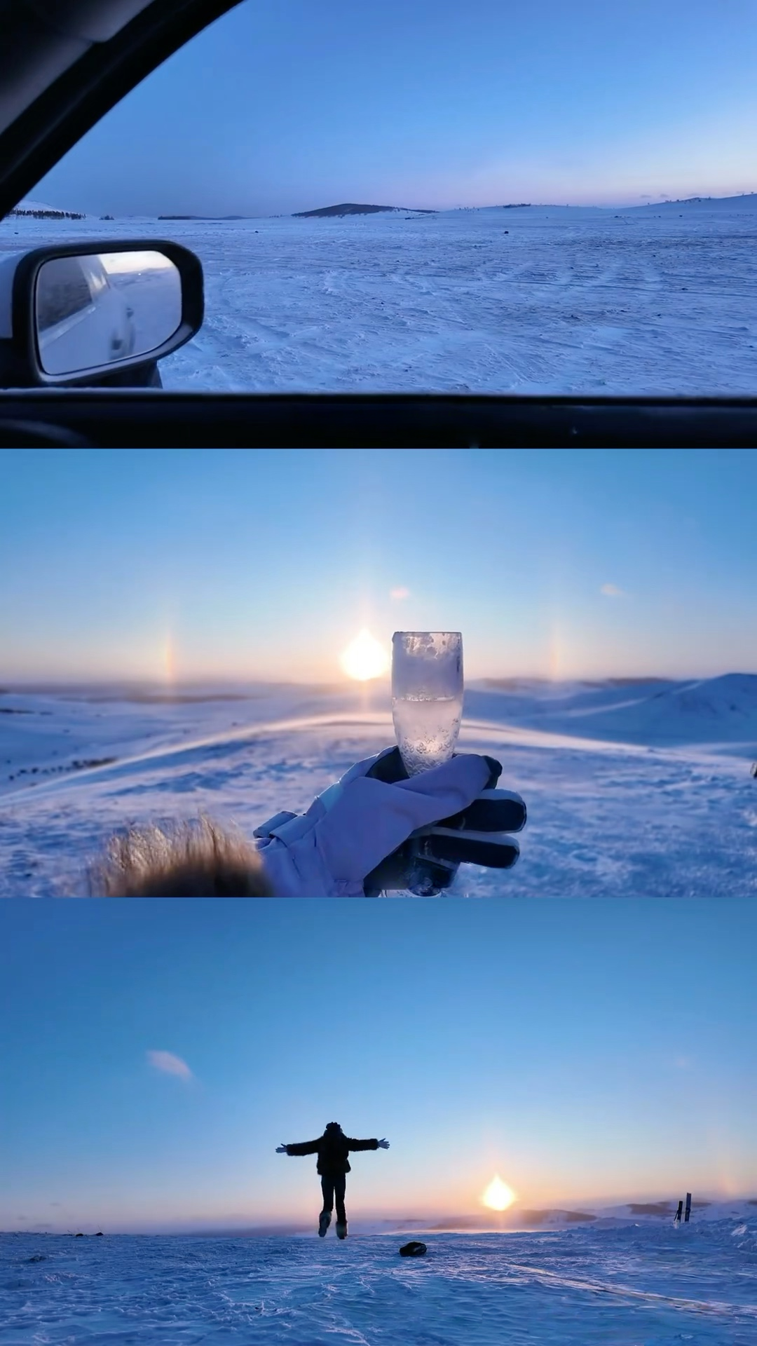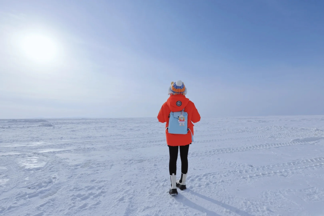 冬季的达里湖完全变成了一个巨大的天然冰场。湖面冰层厚度可达一米以上,足以支撑车辆行驶。冰封的湖面光滑如镜,倒映着天空和周围的雪山,形成了真正的“天空之镜”效果