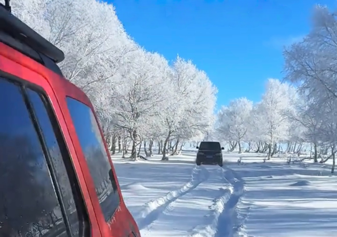 08:00|早餐后酒店门口集结,乘坐硬派越野车前往大兴安岭山脉【黄岗梁国家森林公园】穿越!林海雪原、雾凇奇观、地形起伏、这里不仅可以体验越野穿越的乐趣,绝美冬季景观也尽收眼底!有幸还可遇到野生马鹿群。专业领队讲解雪原生存技巧,分发防寒装备(含加热雪地鞋、暖身贴)车辆升级坦克300,尼桑途乐,丰田酷路泽,全都是硬派越野车队,配备防滑链+卫星通讯设备。