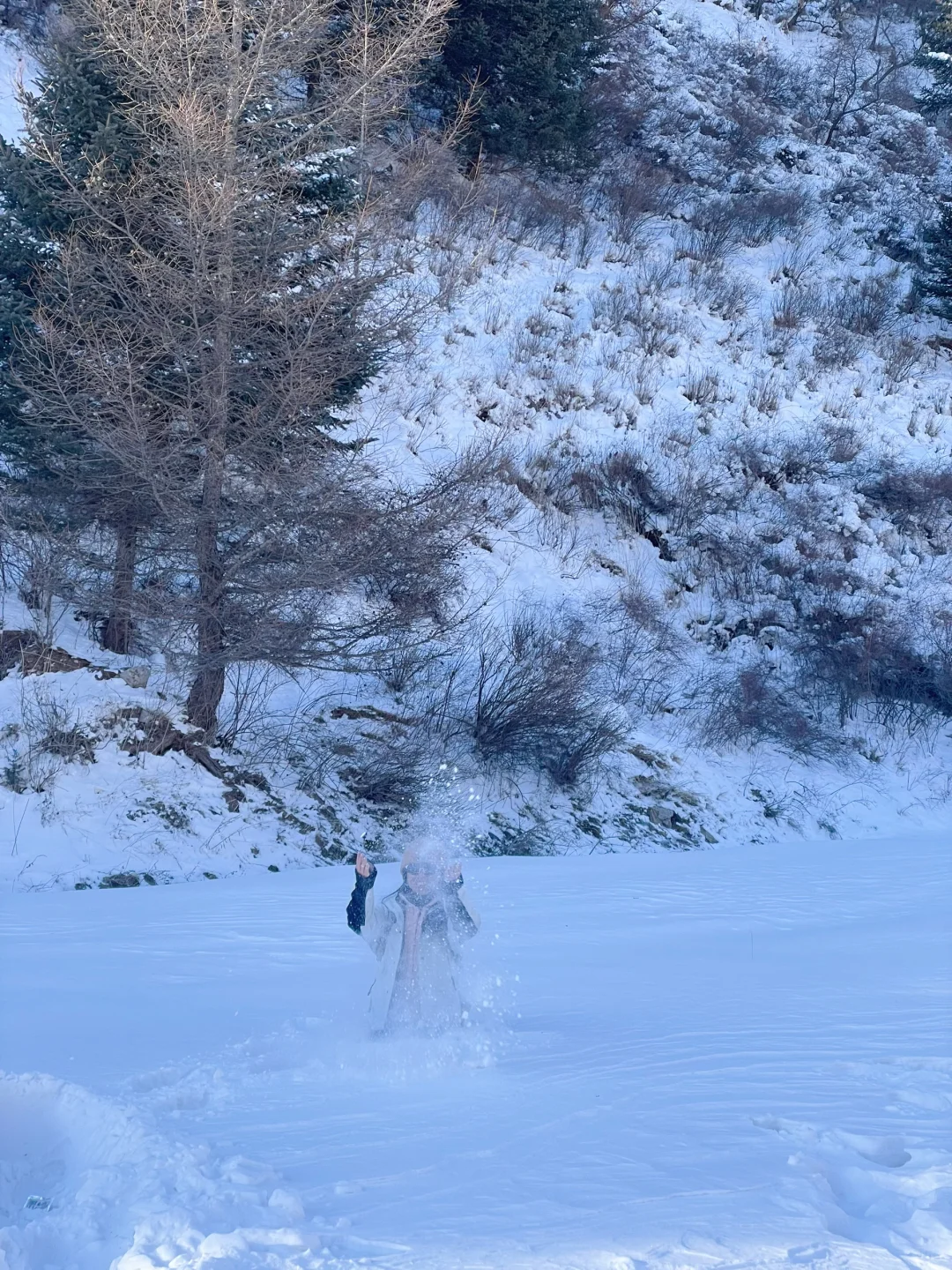 中午|饿狼秘境狂欢,林间开辟雪原餐桌,铜锅沸水映着松枝积雪,羊肉无限续盘:现切察哈尔羊+野生韭菜花蘸料,餐后雪仗大战:分队攻防赛,胜队赢取草原手工银饰彩蛋,随后黄岗梁水库打卡。