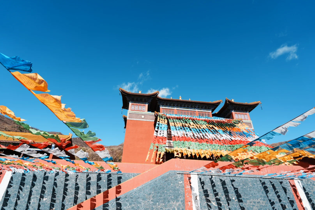 - 早餐后我们前往【美林谷】徒步游览。上午抵达美林谷的徒步起点,在领队带领下咱们整装进山,寒冬则化身北国雪原,漫步林海雪原可闻松涛阵阵,远眺七座山峰如北斗列阵。山谷里有大片的草甸与一望无际的原始森林。徒步路线轻松,景色优美。徒步结束后如果时间合适,途径康宁寺拍照打卡【康宁寺】山环水抱的藏传佛教康宁寺。